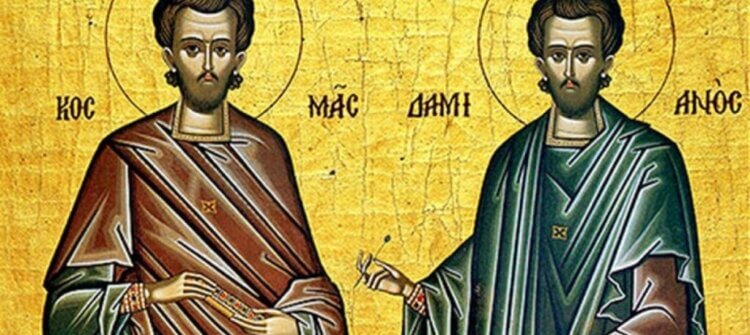 Sfinţii Cosma şi Damian erau fraţi, de neam din Asia. Tatăl lor era păgân, iar mama creştină, pe anume Teodotia. Aceasta, după moartea soțului ei, a trăit în văduvie, având libertate deplină şi închinându-şi toată viaţa lui Dumnezeu.